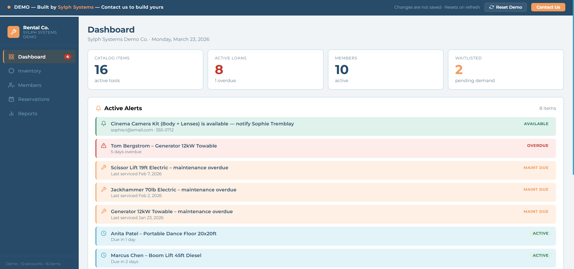 Checkouts and Returns Process rentals in a few clicks. Get alerts when items are overdue. See everything due back today at a glance.